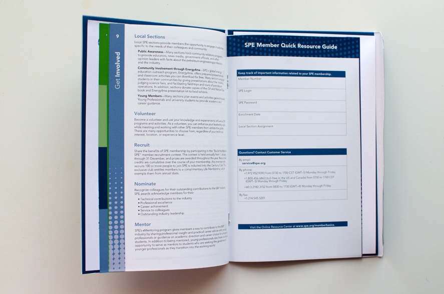 New members of the Society of Petroleum Engineers receive this packet. I created packaging (after meeting with packaging representative), graphic design, and production.